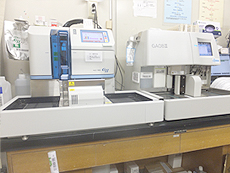 | 薬剤感受性検査 | 培養で感染症の原因菌が認められた場合、どのような薬剤が有効かを 自動測定機器を用いて調べます。 |