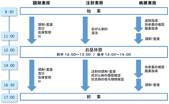 当院薬剤部では調剤業務・注射業務・病棟業務を「当番制」で行っています。