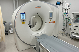 放射線科は常勤2名、非常勤4名の医師が勤務しており、20名の放射線技師とともに検査をこなしています。画像診断のmodalityとして冠動脈を高精細に撮影できる2管球搭載型とAI技術で最適な画像再構成が可能な2台のマルチスライスCT、3Tならびに1.5Tの2台のMR装置が稼働しております。核医学部門ではRI画像とCT画像の融合画像を作成可能なSPECT/CT装置も稼働しており、すべての画像をPACSサーバに転送、レポーティングシステムを用いて読影業務を行っています。