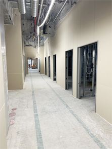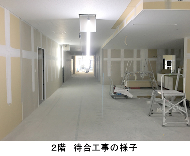 現在、躯体工事は8階まで進んでいます。内装工事・設備工事も1階から6階まで行い、諸室も立体的になってきました。