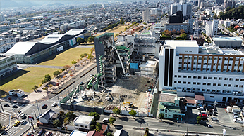 2023年1月から進めてきました既存棟(旧西棟、東棟)の解体が完了しました。今後は、南棟建築工事に向けた地盤改良工事を行います。