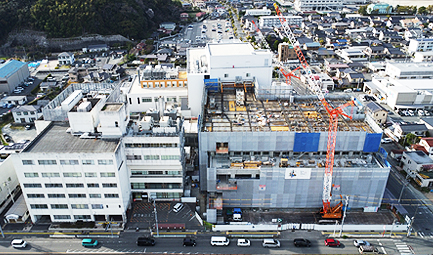 第二期工事の南棟が竣工し、施主検査を経て、11月28日施工会社より引渡しを受けました。引渡し後、すぐに医療機器や什器の搬入開始と同時に2ヶ月かけて順次引越しを行い、令和8年2月1日より北棟と南棟による全面供用開始となります。