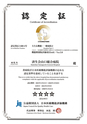 日本医療機能評価機構より、病院機能評価の認定を受けました!