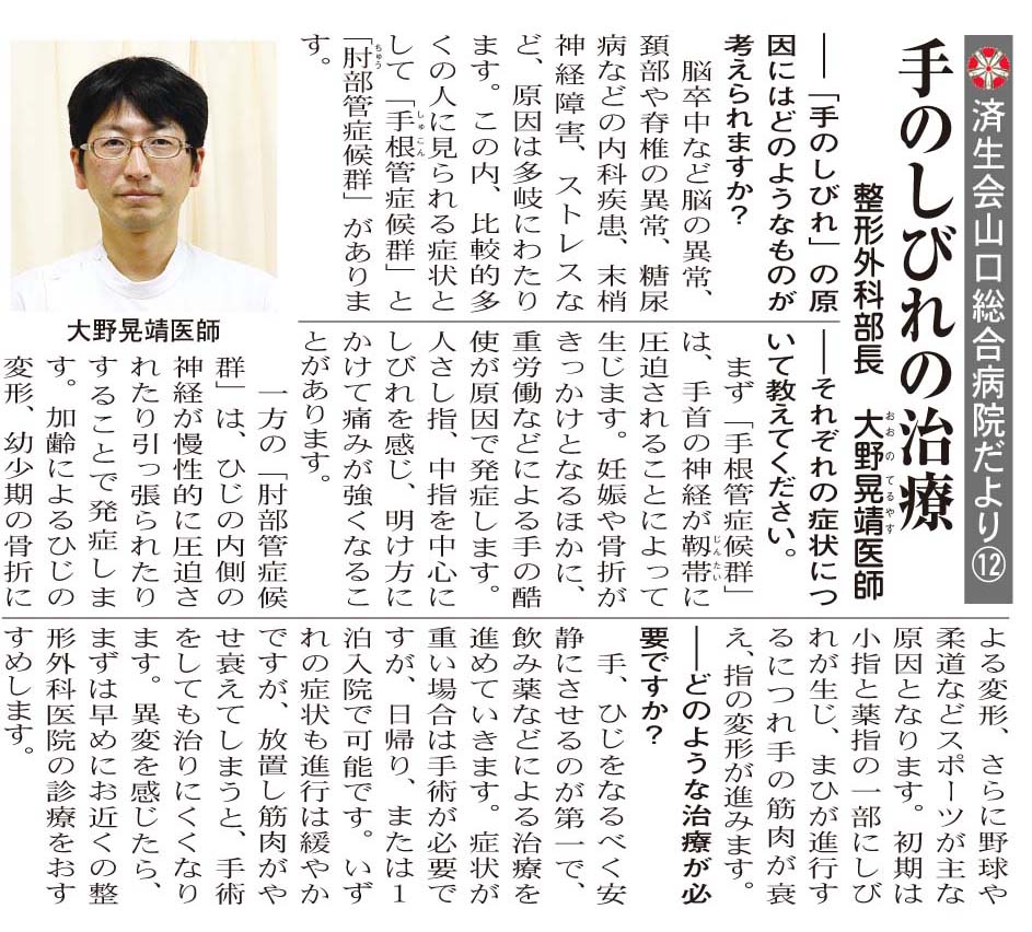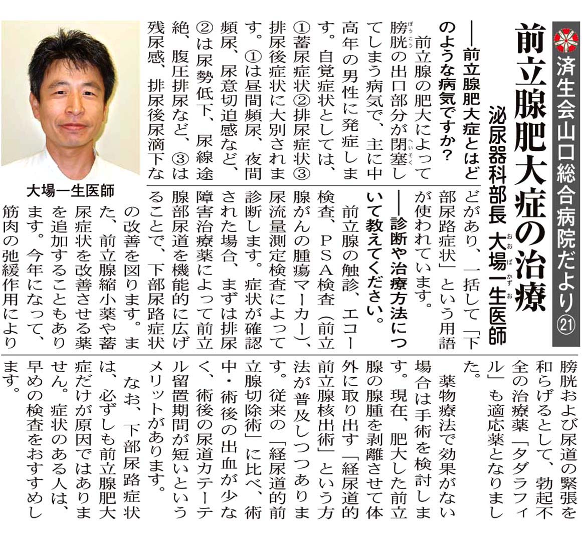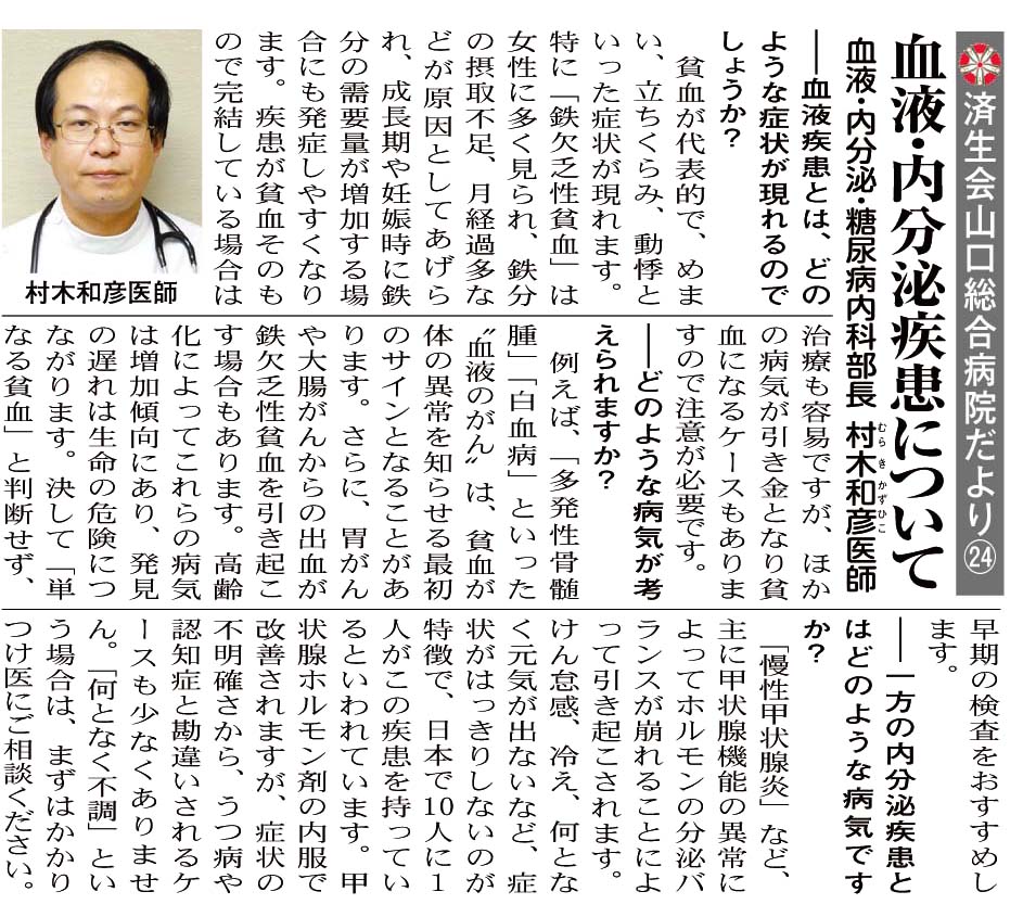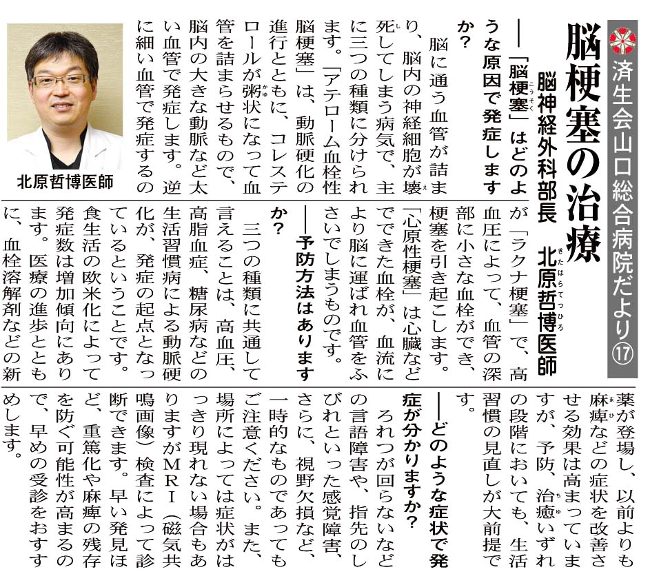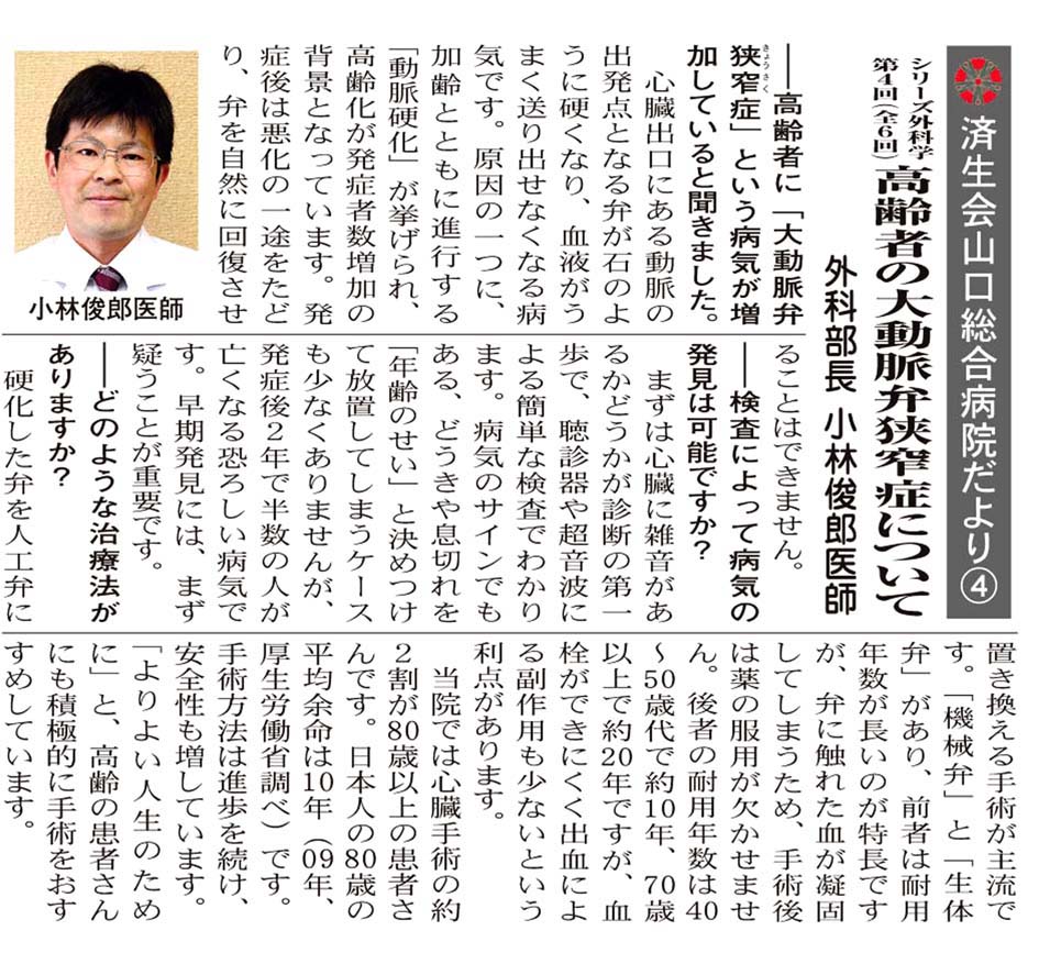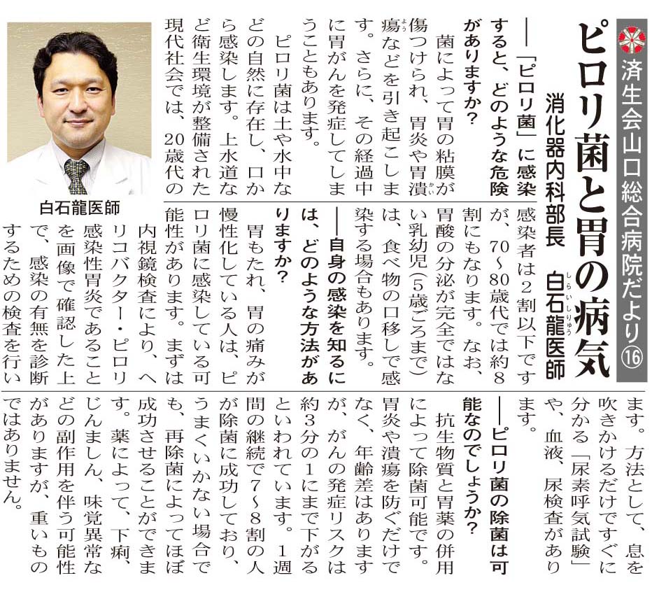 当院では、地域の皆さまに病院の取り組みや考え方をお伝えするため、定期的(毎月第2土曜日)に地方情報紙「サンデー山口(山口版)」に済生会山口総合病院だよりを掲載しております。